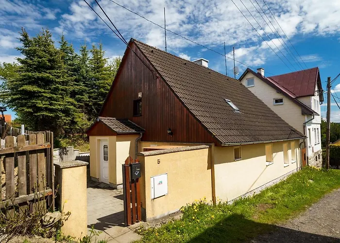 Chata Nerudovka Villa med 1 sovrum, som ligger inom 25 minuters promenad från Plešivec, erbjuder gästerna en gemensam lounge där de kan koppla av. Gästerna kan delta i snöskidåkning, vandring och skidåkning i den här villan, som ligger inom 2 km från Ski resort Plesivec.